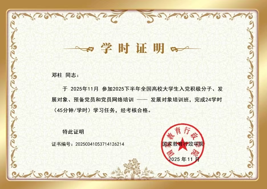 11月6日至12日,后勤保障中心党委组织发展对象参加党校培训。综合党支部邓柱、校医院党支部曹礼、子弟小学党支部徐慧认真参加学习并顺利结业。