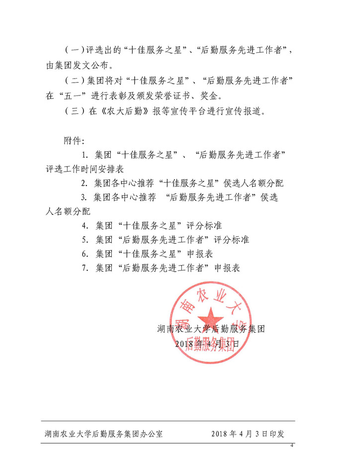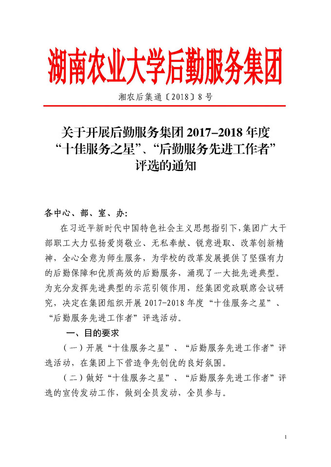 关于开展后勤服务集团2017-2018年度 “十佳服务之星”、“后勤服务先进工作者” 评选的通知