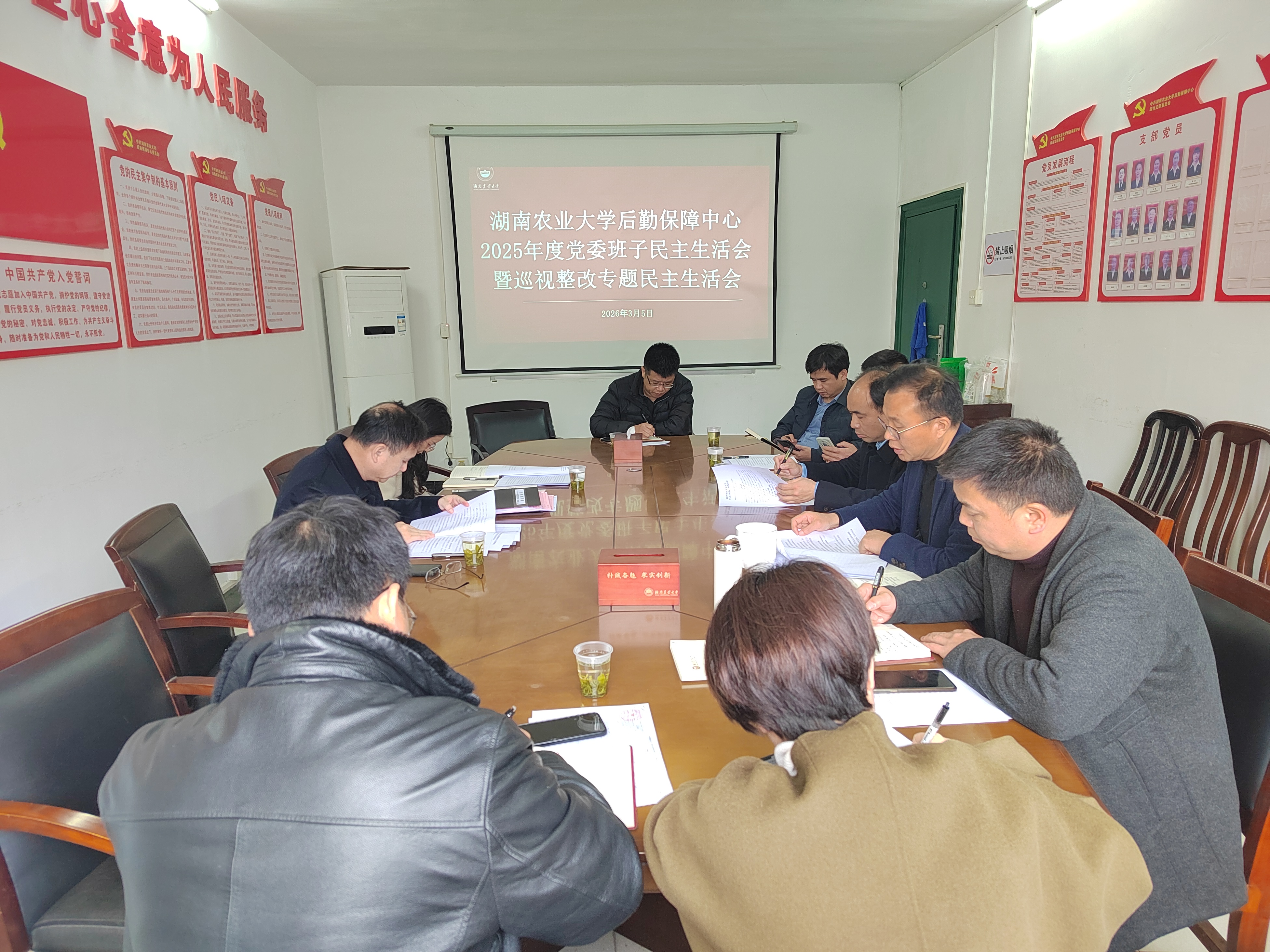 3月5日,后勤保障中心党委组织召开2025年度处级班子民主生活会暨巡视整改专题民主生活会,学校党委委员、副校长吴波到会指导,中心党委书记陈岸主持会议,全体处级班子成员、党委委员参会。