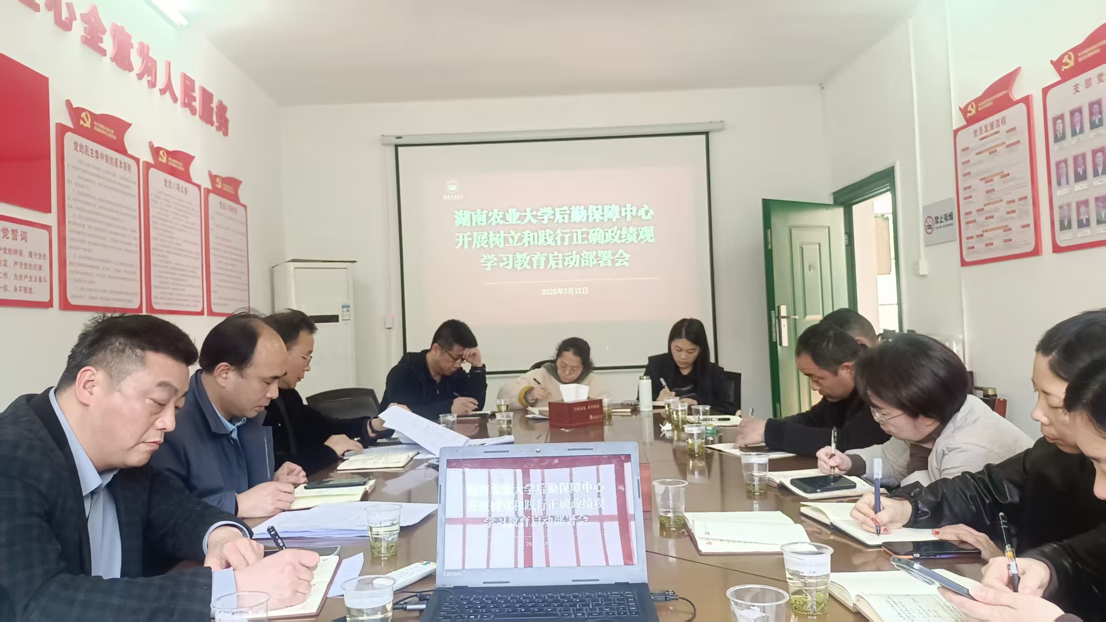 (综合办供稿)3月12日下午,后勤保障中心组织召开树立和践行正确政绩观学习教育启动部署会。中心党委书记陈岸主持会议并讲话,全体处级班子成员、党委委员、各支部书记及各二级部门负责人参加会议。